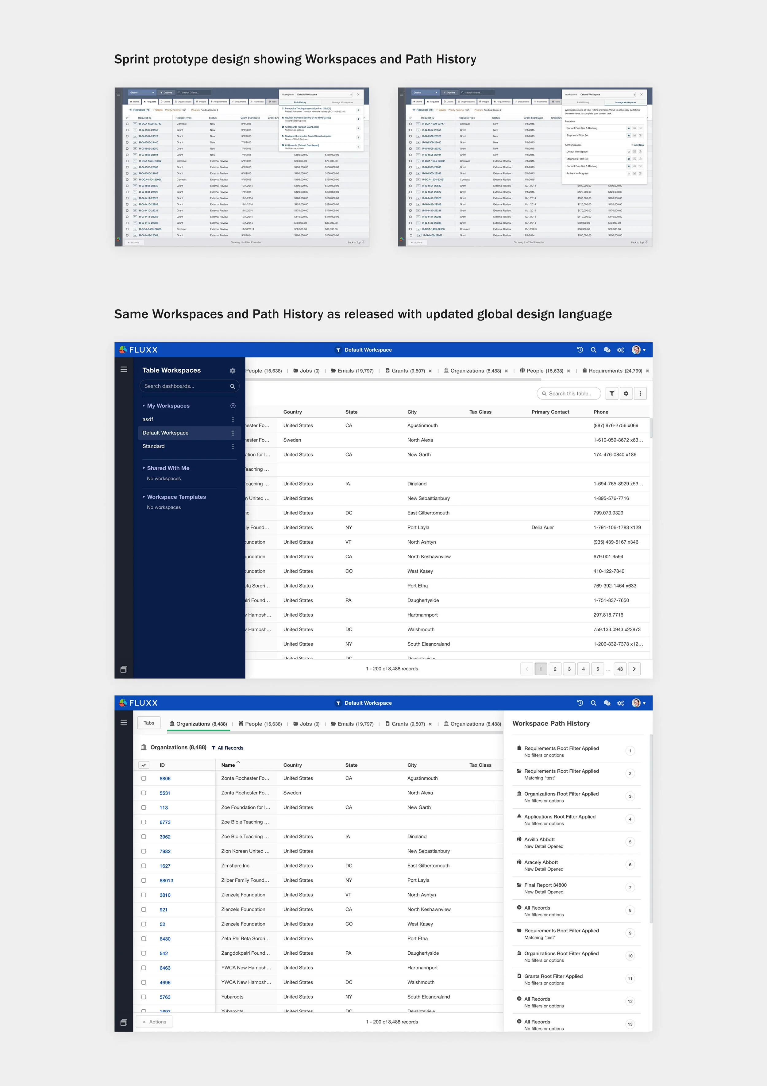 It was exhausting, but jitter-inducing. The deal was made, and while the sprints ended, the real work had just begun. Over the course of the next year, design solutions continued to evolve - both because I built a better understanding of the problems we were solving in that sprint, and also because of improvements I made to Fluxx’s nonprofit product, Grantseeker, that I systematized and incorporated into Grantmaker.